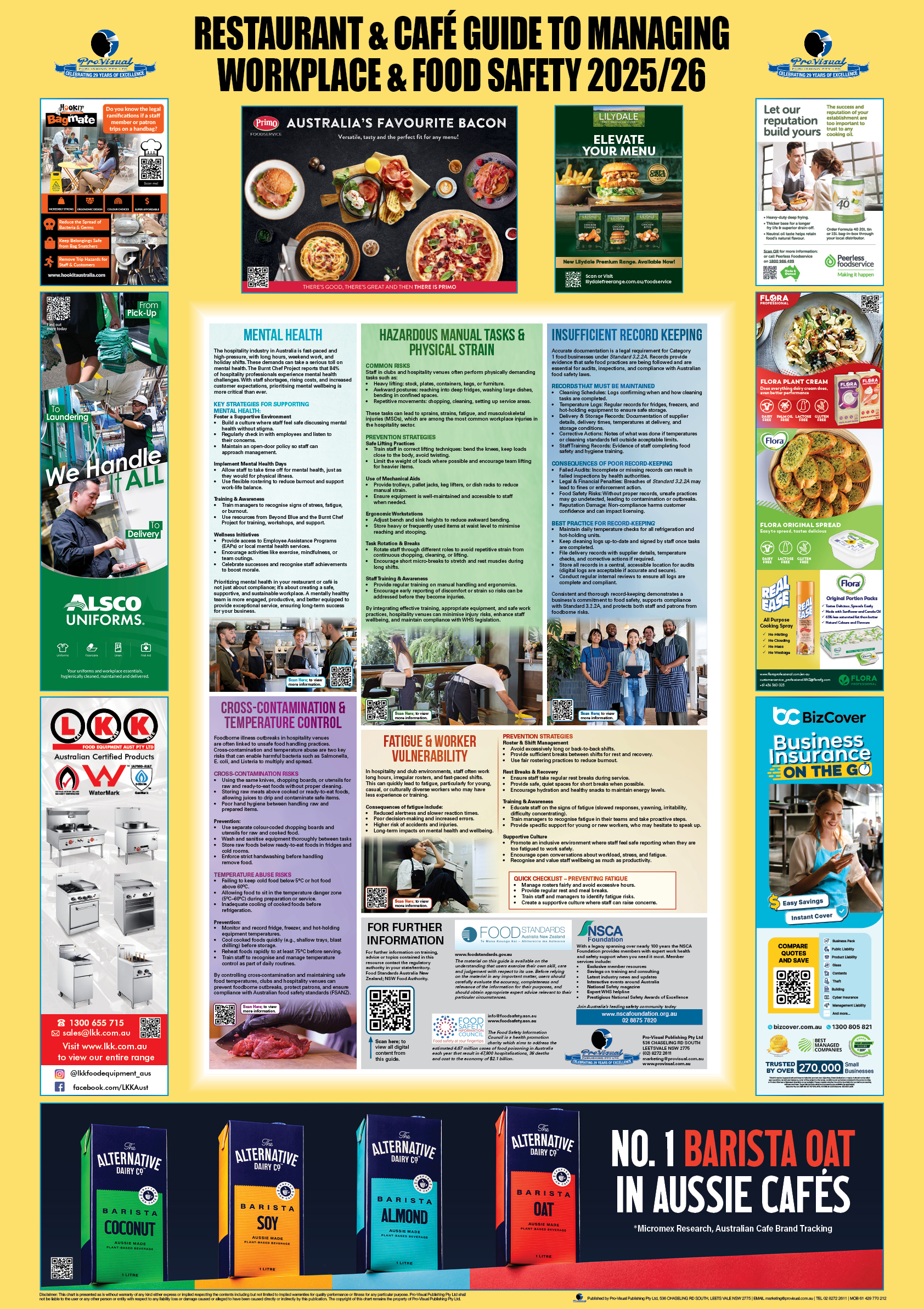 This year’s edition covers information on essential WHS topics; Mental Health, Hazardous Manual Tasks & Physical Strain, Insufficient Record Keeping, Cross-Contamination & Temperature Control, Fatigue & Worker Vulnerability.