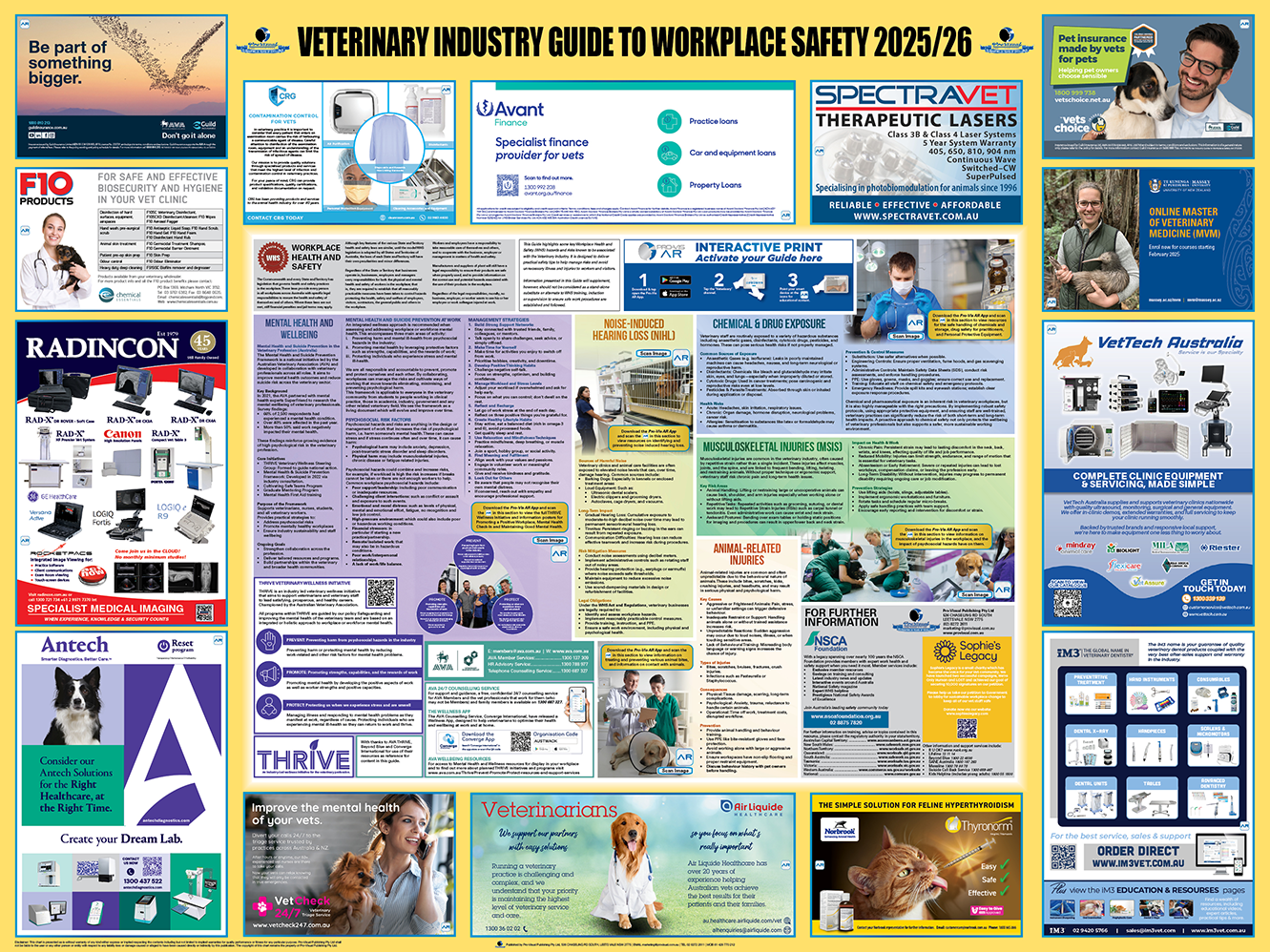 This year’s Guide addresses; Mental Health And Wellbeing, Encompassing the AVA holistic approach using the 3 Pillars THRIVE initiative – Prevent; Promote; Protect, Chemical & Drug Exposure, Noise-Induced Hearing Loss (NIHL), Musculoskeletal Injuries (MSIS), and Animal-Related Injuries. Utilising the Augmented Reality (AR) tool, resources can be downloaded via the free Pro-Vis AR App, supplementing the printed information and creating an interactive space for clinics to educate and train all levels of veterinary staff.